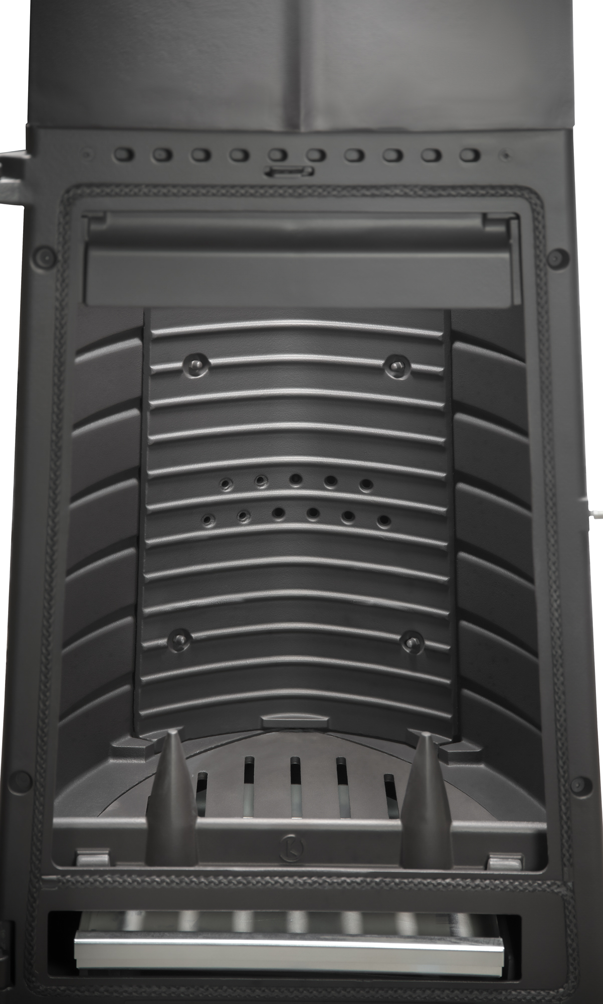 Камин оснащен зольником для удобной очистки и обладает высоким коэффициентом полезного действия (КПД) на уровне 79%, что гарантирует эффективное использование топлива и экономию энергии. Вторичный дожиг дает возможность максимально использовать потенциал дров, обеспечивая длительное время горения.