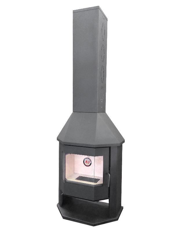 Печь-камин Бавария Мюнхен Гигант предназначен для обогрева помещения объемом до 300 куб. м. Она изготовлена из металла, но внутри топка выложена шамотным кирпичом. С одной стороны, шамот защищает металлические стенки от прогорания, с другой - не дает теплу уходить, повышая качество сгорания дров. Мюнхен Гигант можно назвать полноценным камином. Призматическая дверца позволяет наблюдать за огнём с разных точек комнаты. А металлический кожух скрывает дымоход, если он походит внутри дома. Топочная дверка с большим жаростойким стеклом позволяет наблюдать за тем как горят дрова. Стекло не будет коптиться при нормальной тяге и использовании сухих дров.