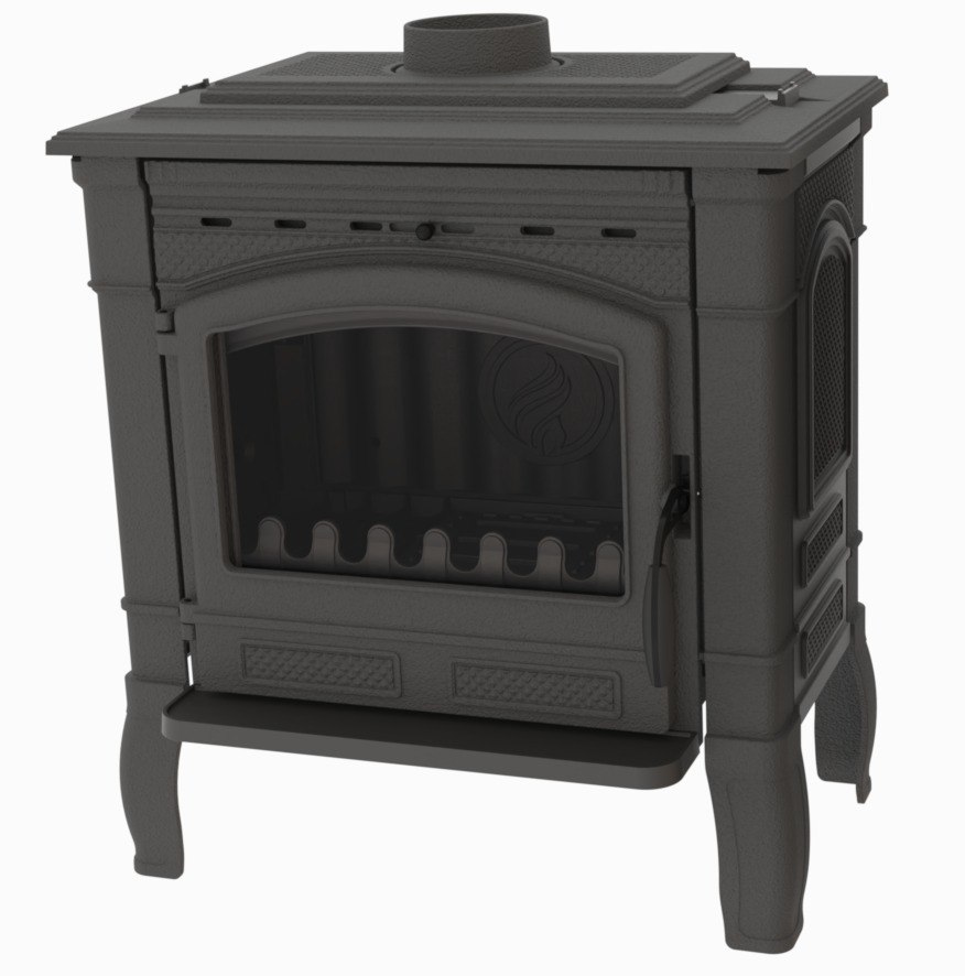 Топка из чугуна обладает превосходной теплопроводностью и стойкостью к высоким температурам. Панорамная дверца создает впечатляющий вид на пламя, придавая вашему интерьеру особый шарм.
